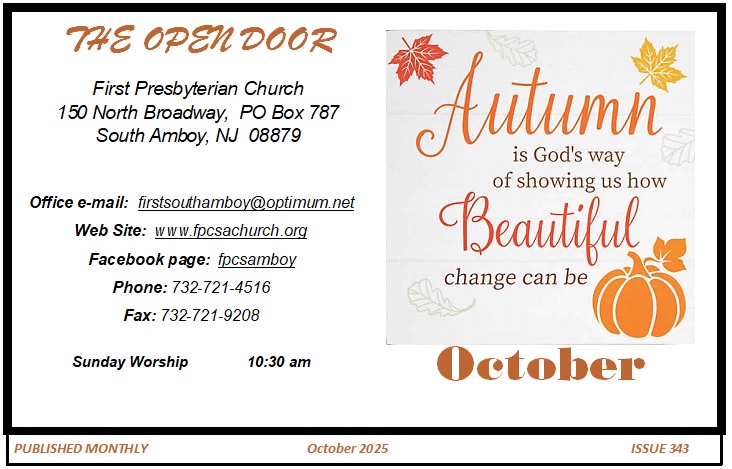 Open Door ~ October 2025 – Issue 343 October 14, 2025 by Office Secretary click image or link for our current Open Door Newsletter. Open Door ~ October 2025 – Issue 343 Posted in Church News & Bulletins